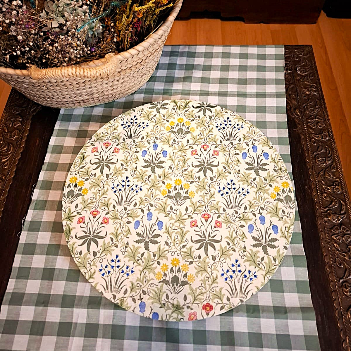 Delicadas flores silvestres en tonos pastel dan vida a este diseño clásico de inspiración victoriana. Con trazos orgánicos, colores suaves y un aire botánico, este estampado transforma cada pieza en una obra de arte atemporal. Ideal para quienes valoran la belleza de los productos hechos a mano y el encanto natural en su decoración.